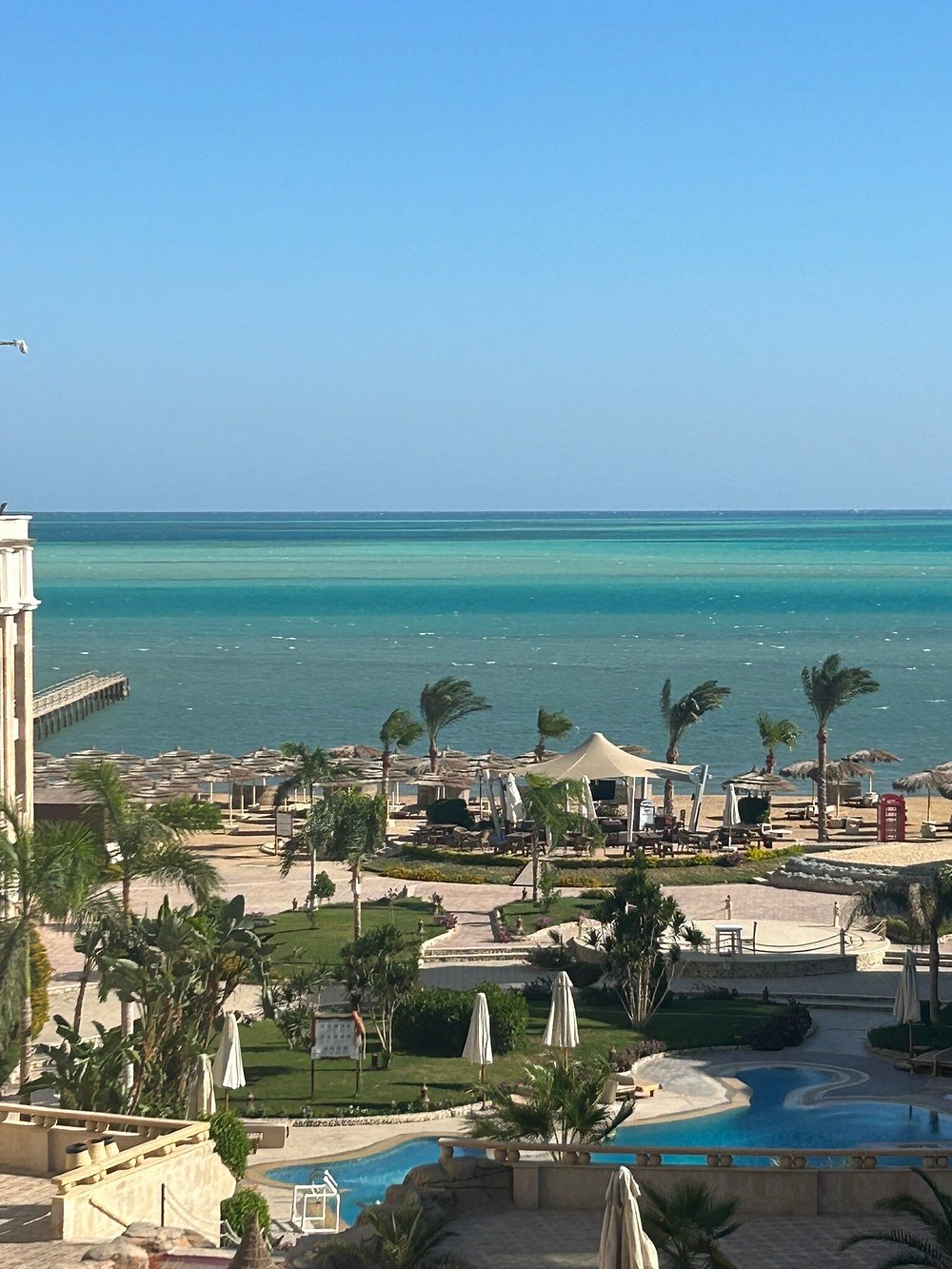 Red Sea views and a private beach that allows guests to enjoy water activities such as swimming, diving, and windsurfing.