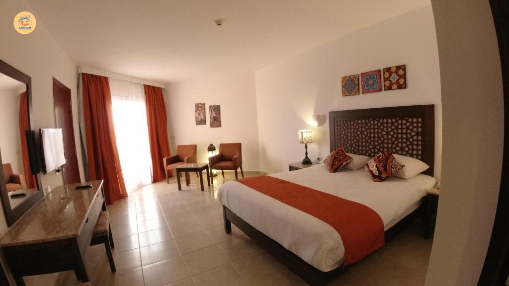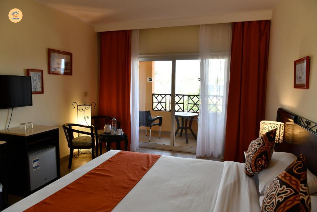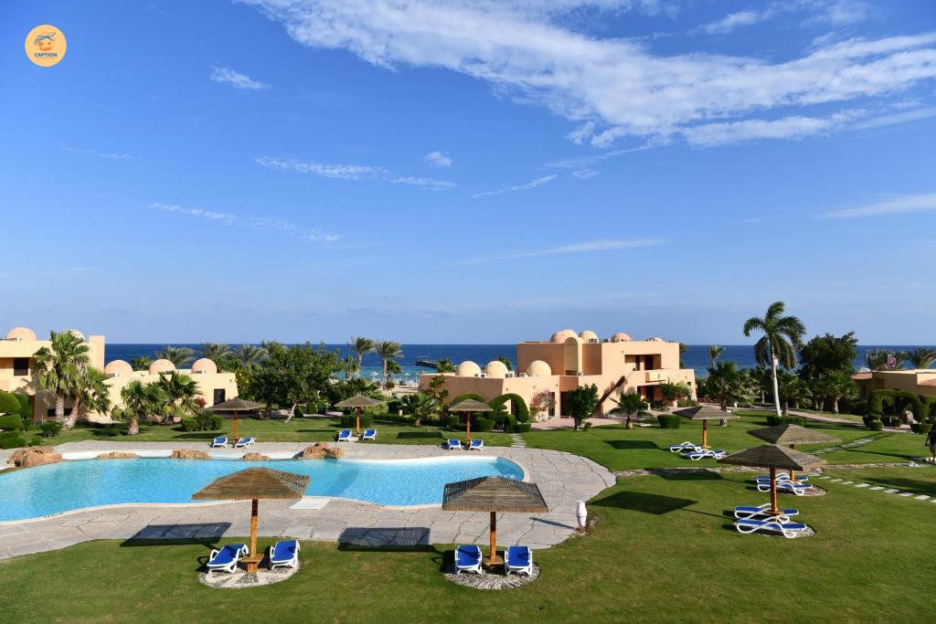 The resort offers outdoor swimming pools, a children’s pool, a playground, beach sports facilities, and entertainment activities. Guests can also enjoy diving excursions organized by the nearby dive center to explore the fascinating underwater world of the Red Sea.